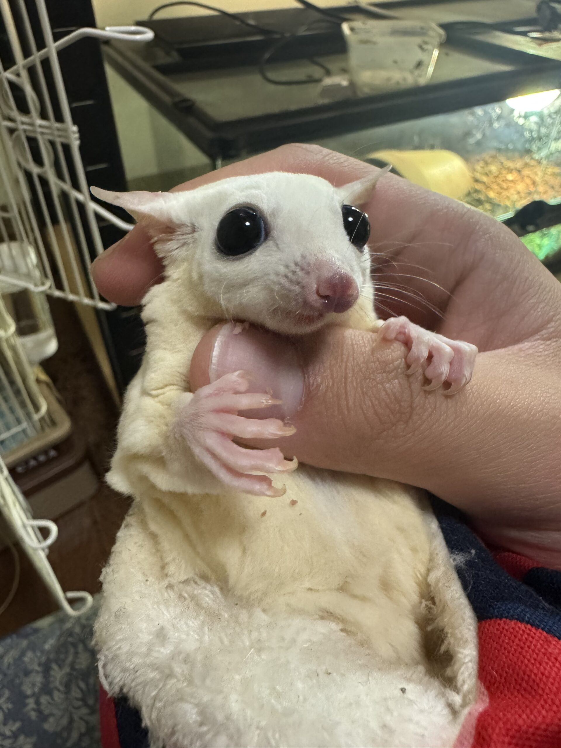私自身、フクロモモンガをお迎えする際、とにかく慣れやすい個体を選びたかったため、生後2ヶ月ほどのベビーをお迎えし、実際に幼い時からたくさん私と関わらせたこともあって、今やベタ慣れ状態になっていることを考えると、ベビー人気が高いのも納得です。