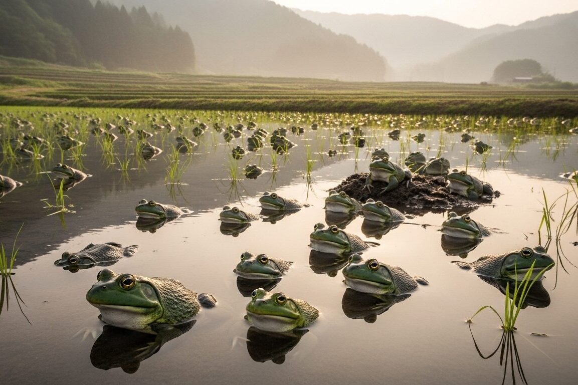 両生類ウシガエル在来種の捕食、病原体の拡散