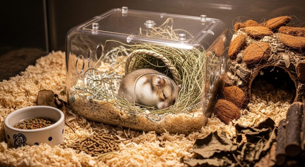 ハムスターは基本的に臆病で、暗くて狭い場所を好む生き物