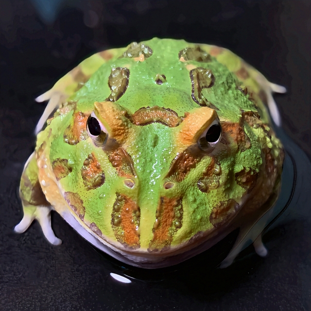 アルゼンチンツノガエル | 黄色やオレンジが鮮やかで観賞価値が高い。やや大きく成長する。 | ★★☆(初心者〜中級者) |