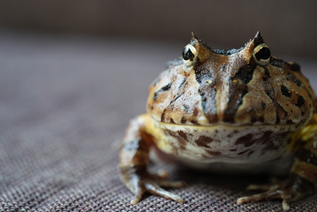 成体になると、体長10〜15cmほどに達することから、普段アマガエルなどに見慣れている私たち日本人にとっては、ツノガエルのサイズはかなり大きく感じるかもしれません。