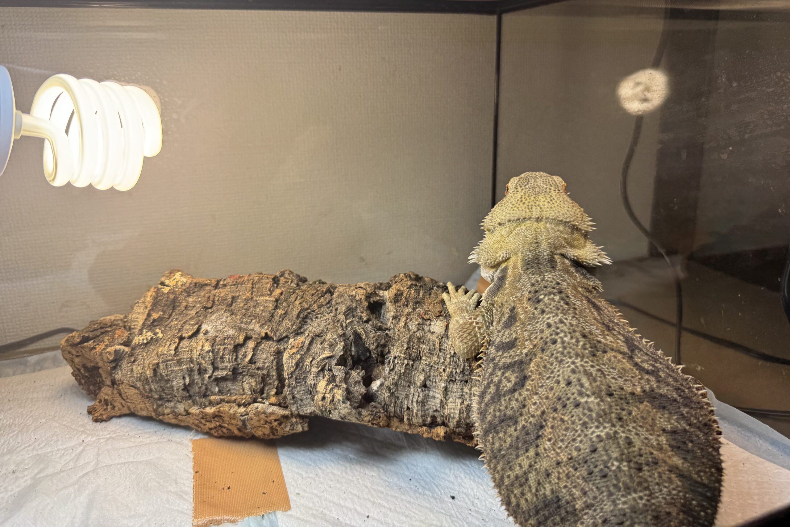 ペットシーツは、フトアゴヒゲトカゲが誤飲してしまうリスクがないこと、簡単に取り替えられるので清潔な環境を保ちやすいこと、そして、とにかく安いこともあり、非常に初心者向けの床材といえるんです!