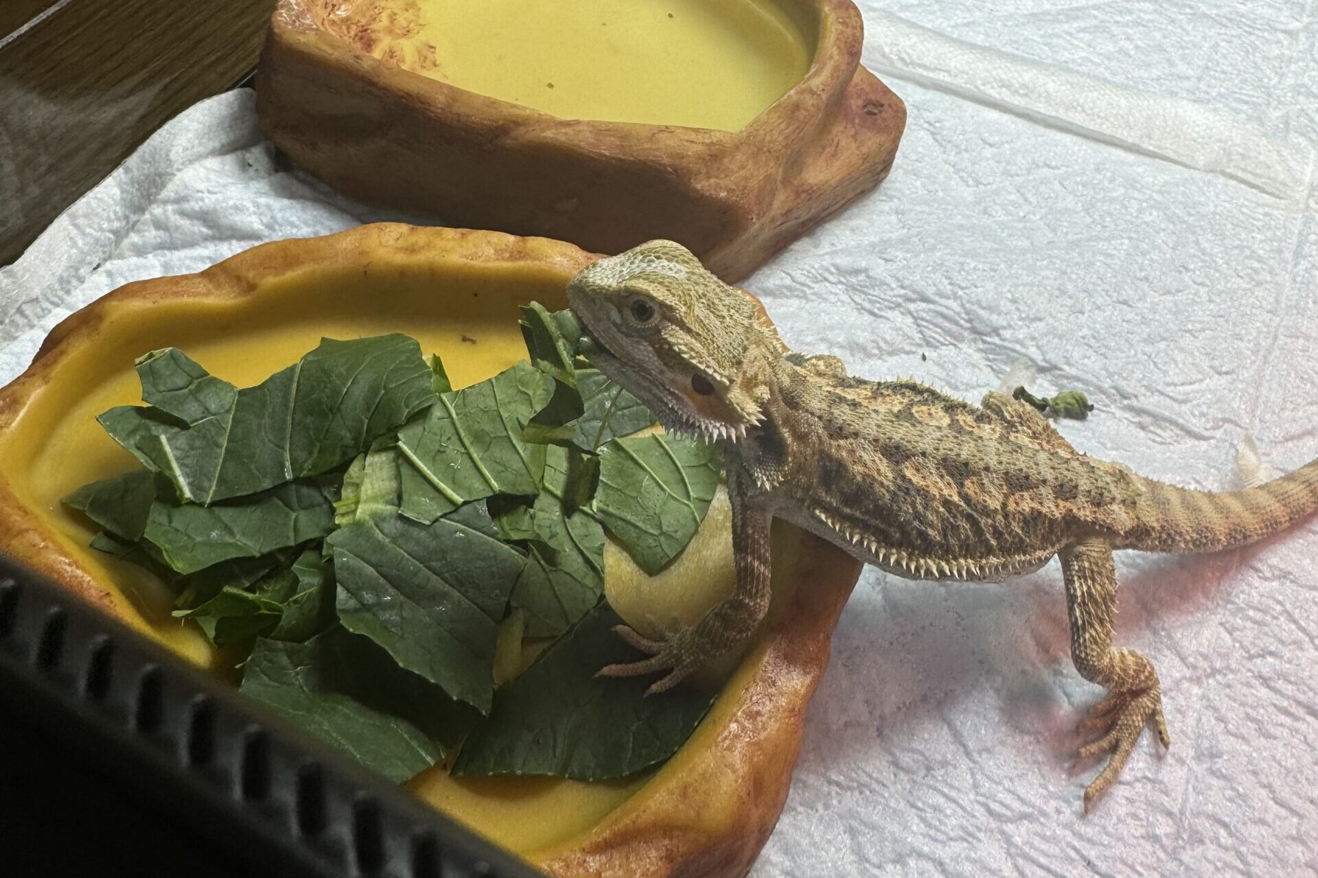 フトアゴヒゲトカゲは力が強いため、容器に安定感がないと簡単にひっくり返されてしまい、また、容器が浅くないと、そもそもフトアゴヒゲトカゲが食欲を失ってしまうことがあるので、注意が必要です。