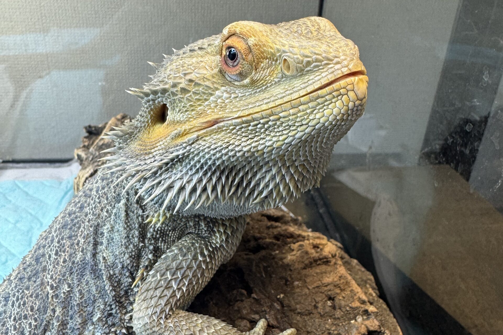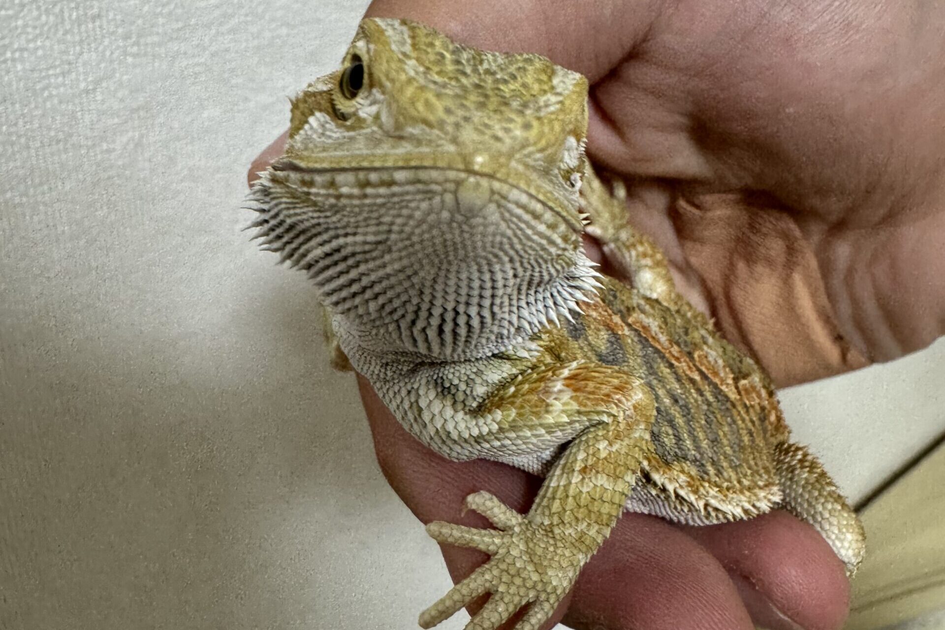 私の飼育しているフトアゴヒゲトカゲも、初心者向きのレザーバックにカラーが黄色の『イエローレザバック』というモルフの個体です。