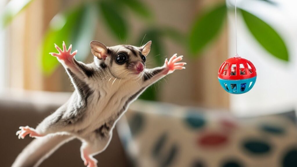 フクロモモンガは知能が高いため、人間と同じようにおもちゃを与えることで、退屈せずに過ごすことができます。