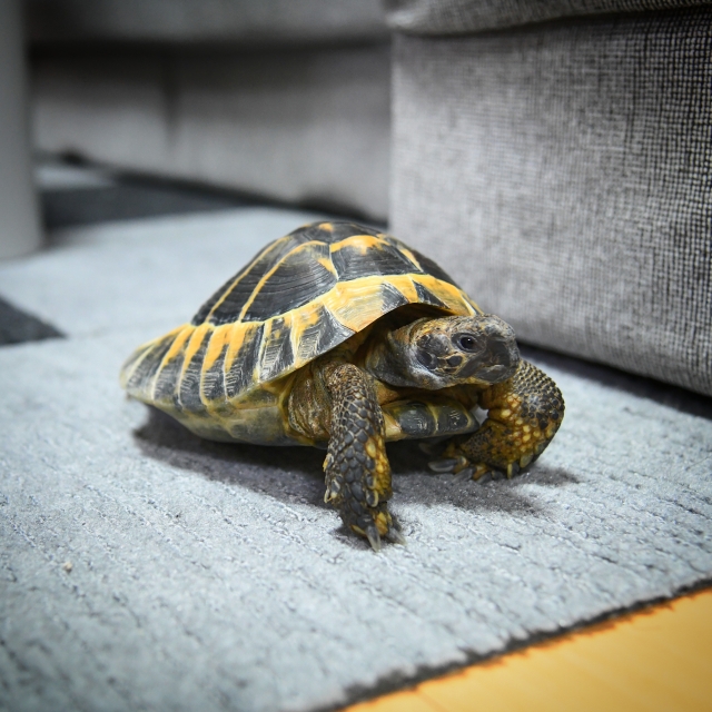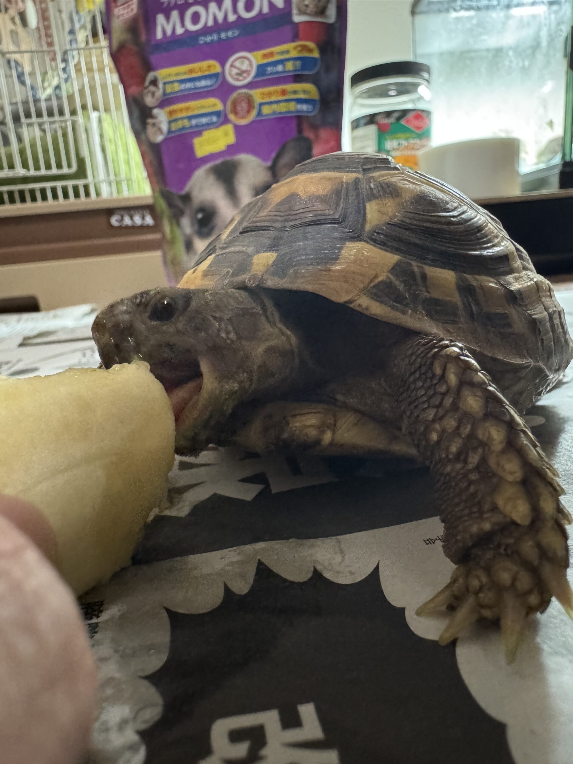 腹甲を引き摺って歩くようになると、リクガメの健康面はもちろん、見栄え面も良くないので、出来れば”四肢が強く踏ん張れるくらい”の硬い床材を選ぶのが理想!