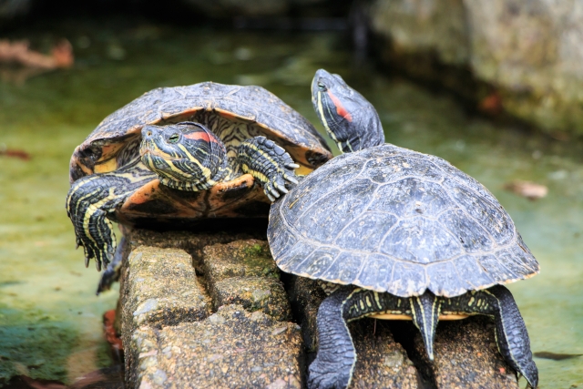 ニホンイシガメが生息数を減らしている大きな要因として、『ミシシッピアカミミガメ』との競合に敗れていることが真っ先に挙げられるでしょう。