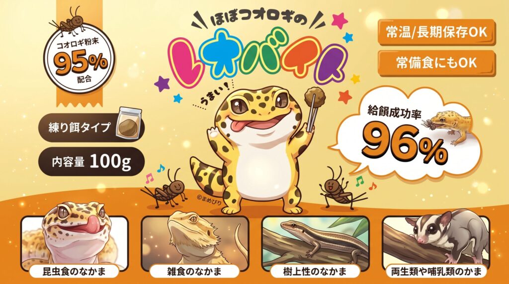 といった強みを持った、”レオパードゲッコー用の人工エサ”です。