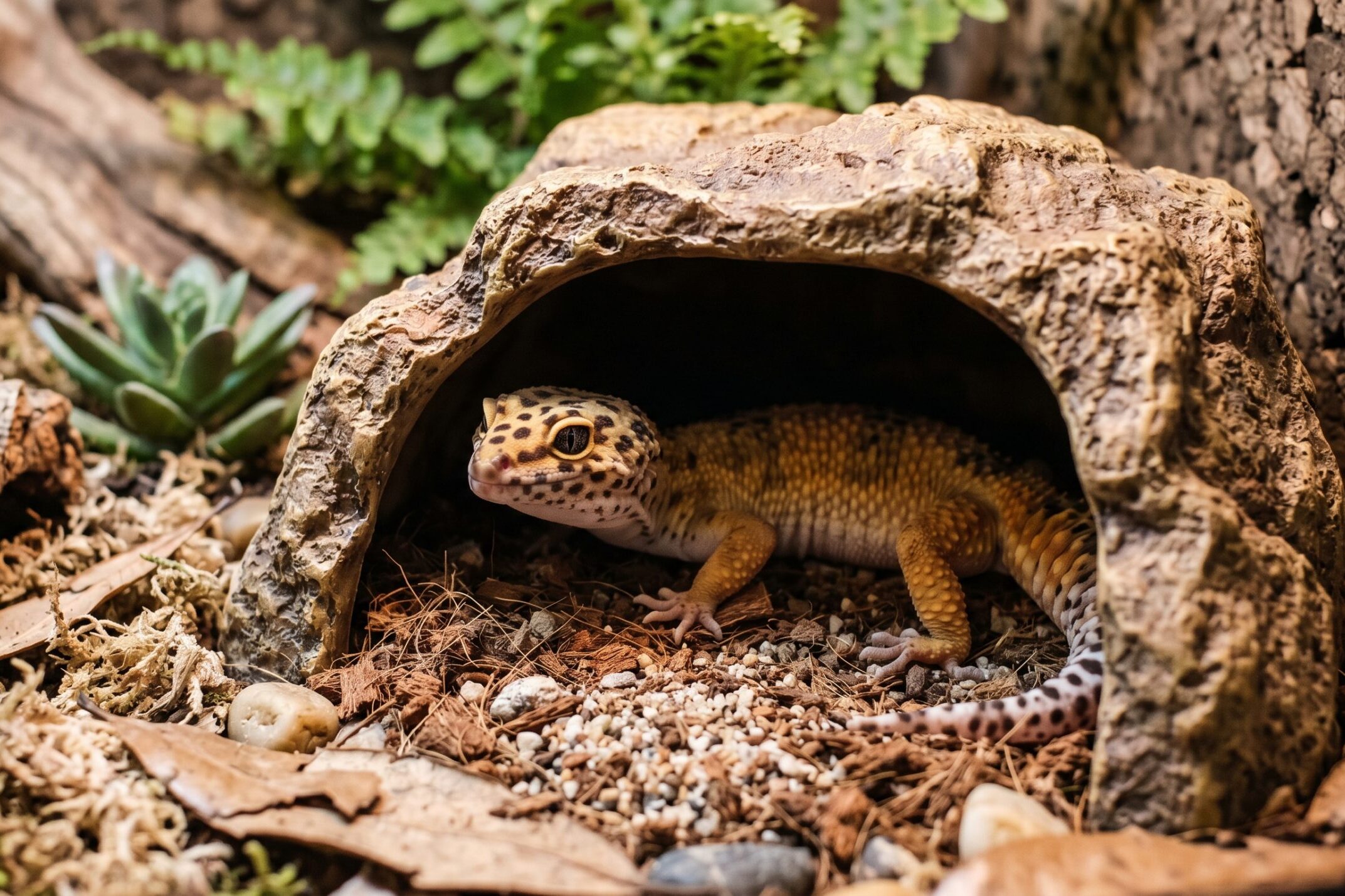 レオパードゲッコーは、本能的に『外敵から身を守るものがある』という安心感を得ることができます。