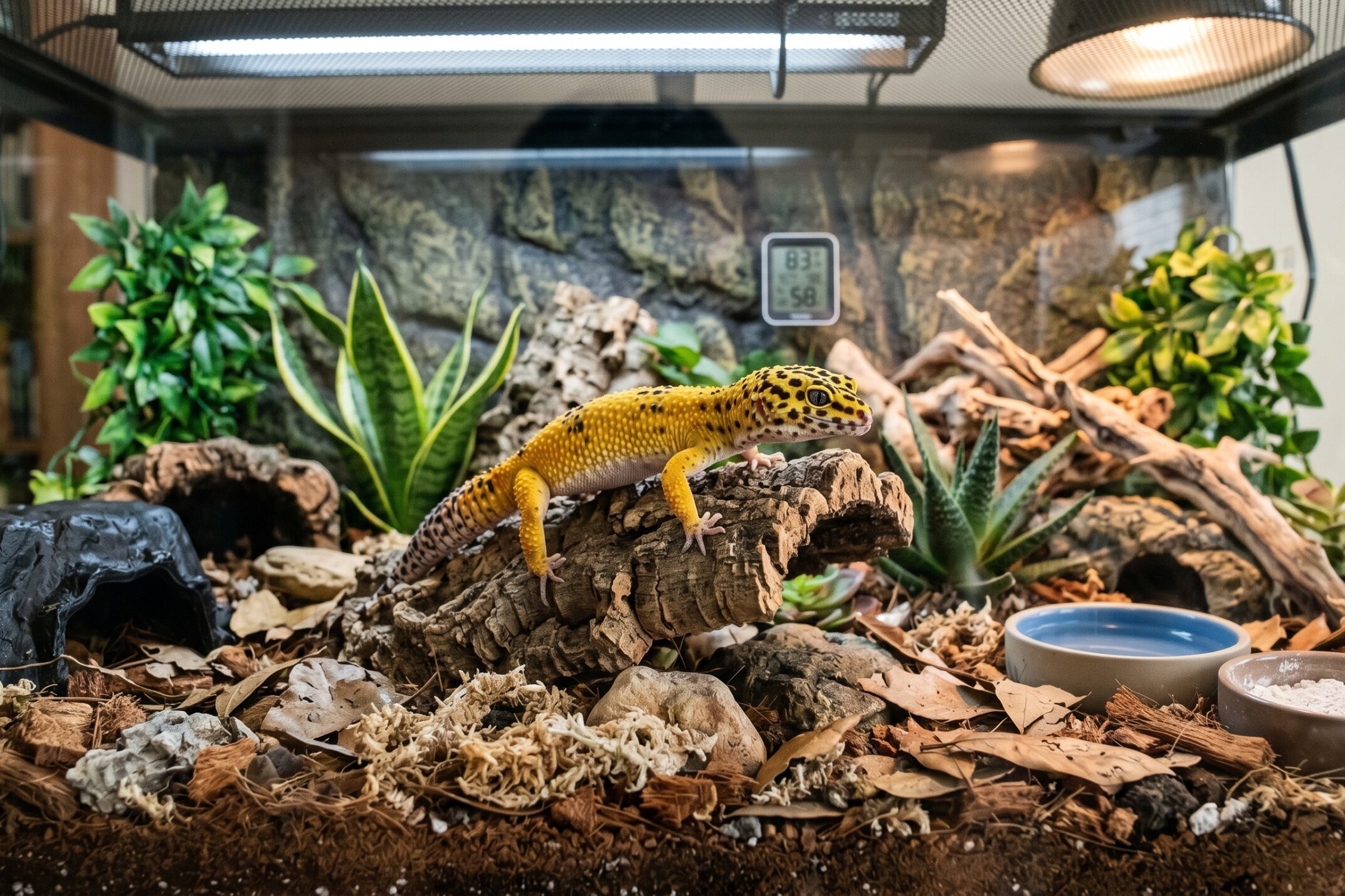 レオパードゲッコーの飼育に必要な設備は以下の通りです。