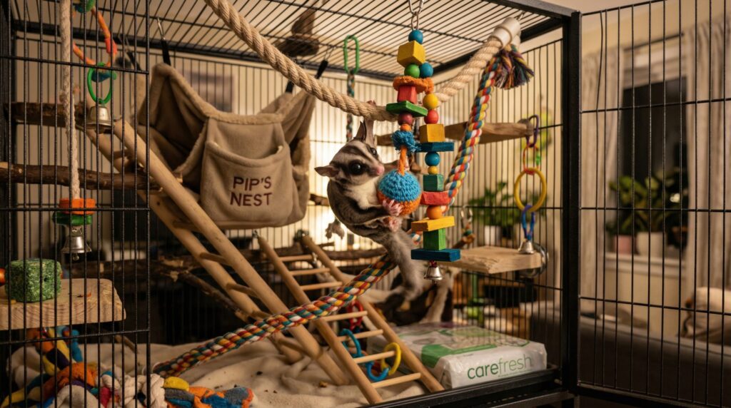 フクロモモンガを飼育する上で、『ケージ内に設置するおもちゃ』はとても重要な役割を果たします。
